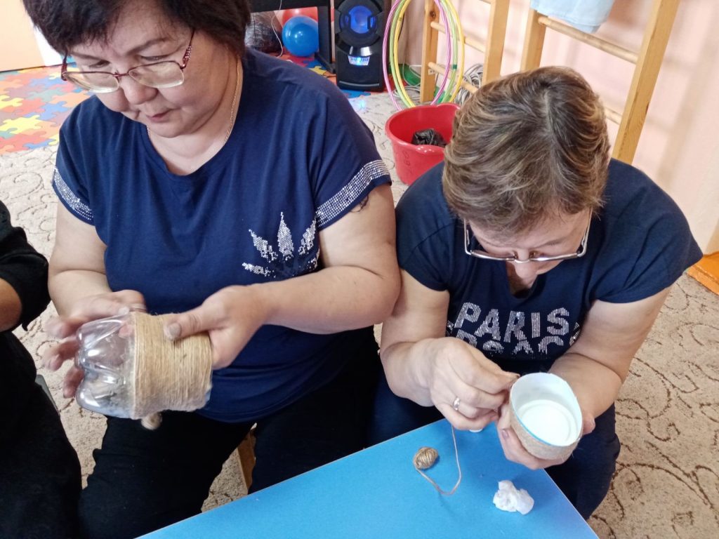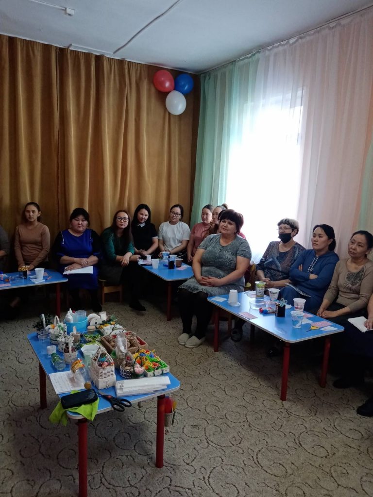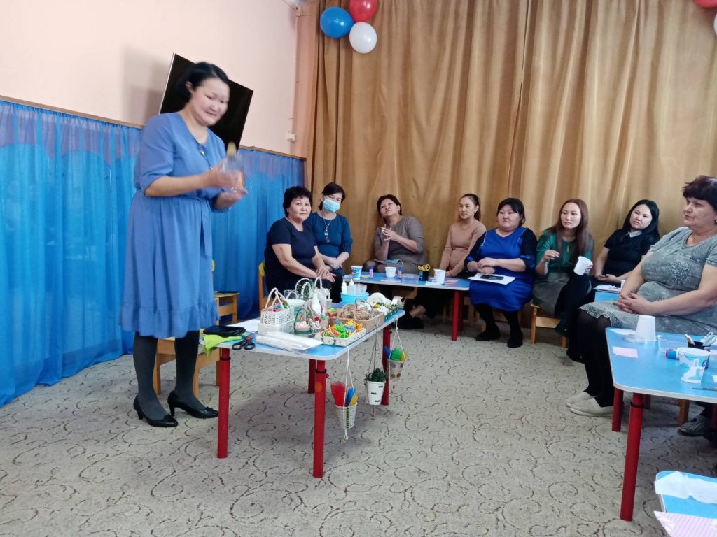 Воспитатель младшей группы Чимита Куулар провела для коллег-педагогов мастер-класс по изготовлению различных поделок из бросового и природного материала. Задача мастер класса — расширить знания педагогов о значении использования нетрадиционного материала для развития детей, показать возможность овладения новыми способами предметно-познавательной деятельности.