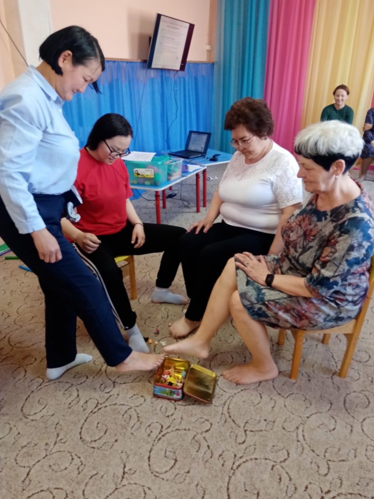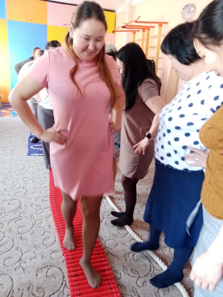 В процессе организации в ДОУ оздоровительно-профилактической работы приоритетное значение должно отводиться профилактике плоскостопия, занимающего одно из ведущих мест в структуре патологий опорно-двигательного аппарата у детей. Воспитателям предложили поиграть в те игры, которые можно играть с детьми по профилактике и коррекции плоскостопия.