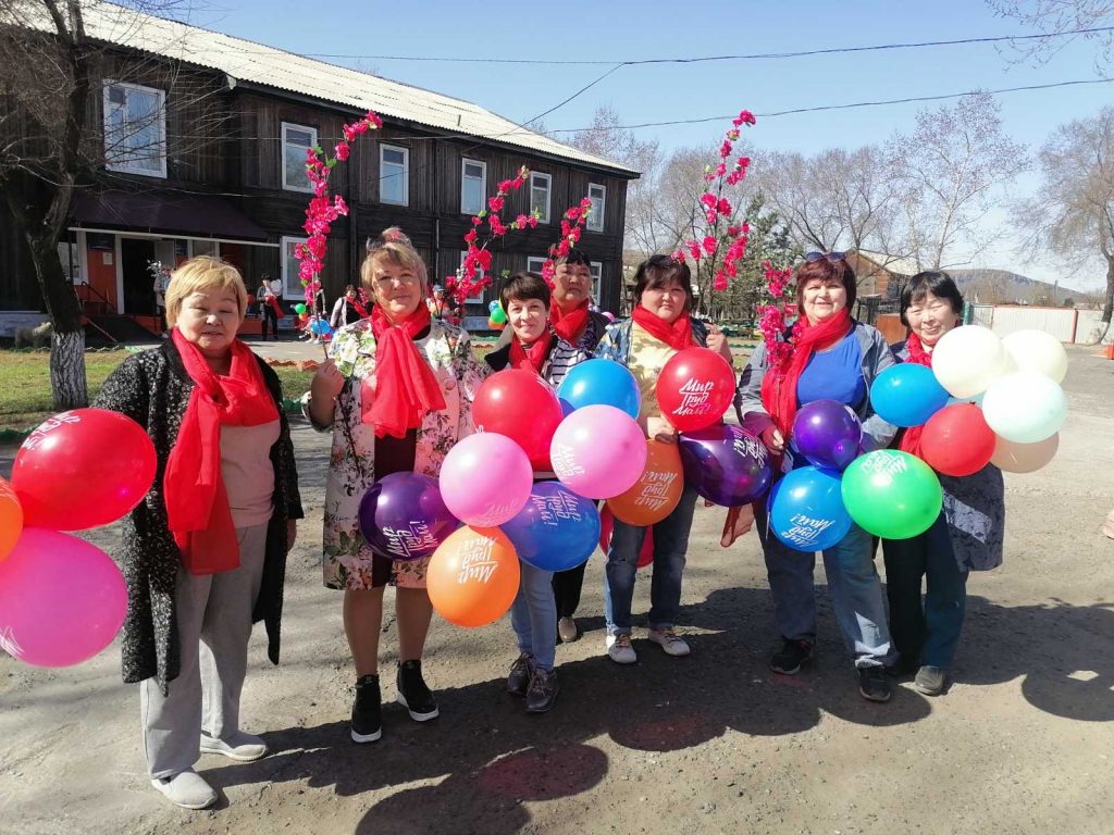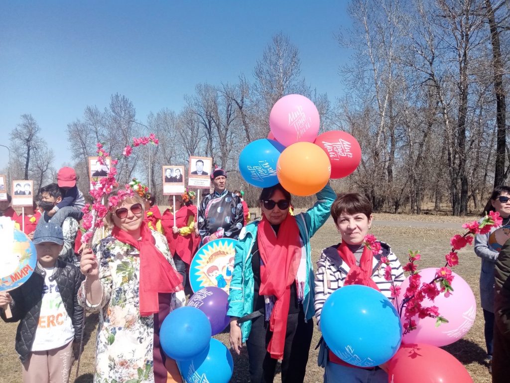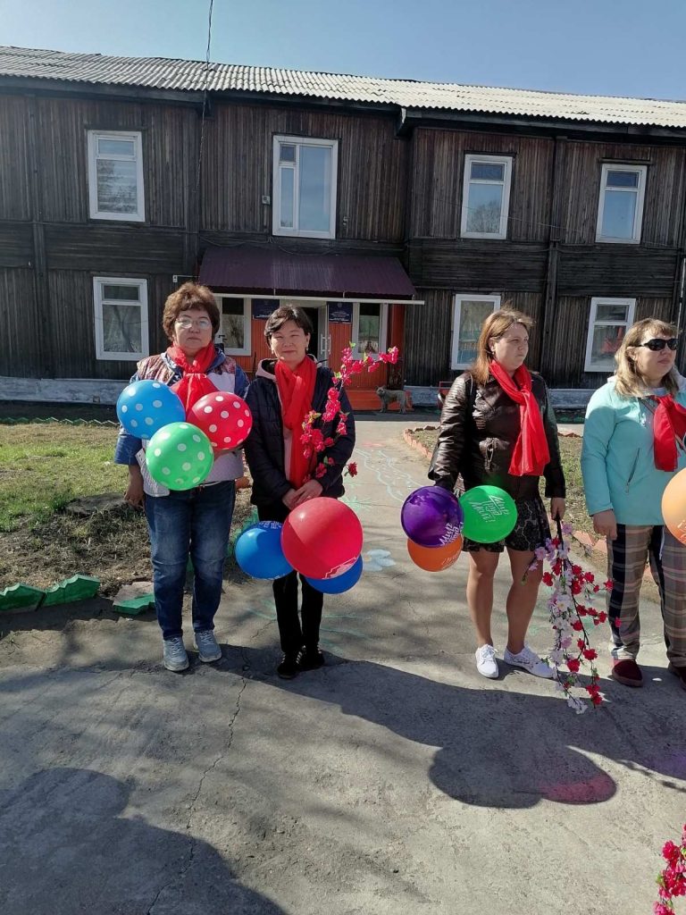 Коллектив детского сада «Малышок» принял участие в параде-шествии трудовых коллективов поселка Каа-Хем, посвященном 1 Мая — празднику Весны и труда.
