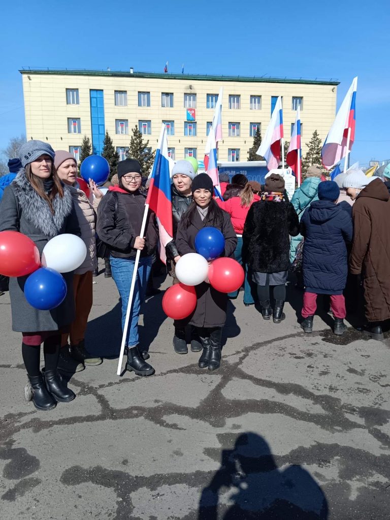 17 марта коллектив нашего детского сада «Малышок» принял участие в митинге-концерте, который состоялся на площадке перед администрацией Кызылского кожууна в честь 9-й годовщины воссоединения Крыма и Севастополя с Россией. На митинге присутствовали коллективы организаций, учреждений и жители поселка Каа-Хем. Площадь украсили триколоры и флаги. Для участников митинга был организован концерт с участием именитых звезд республики и кожууна.