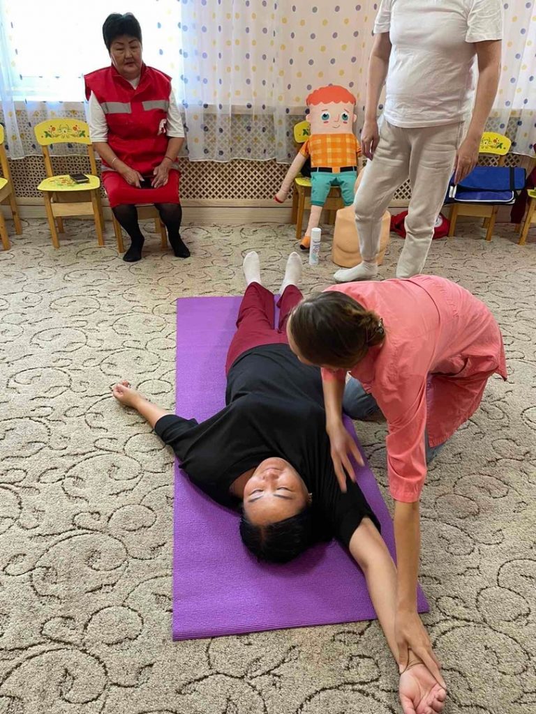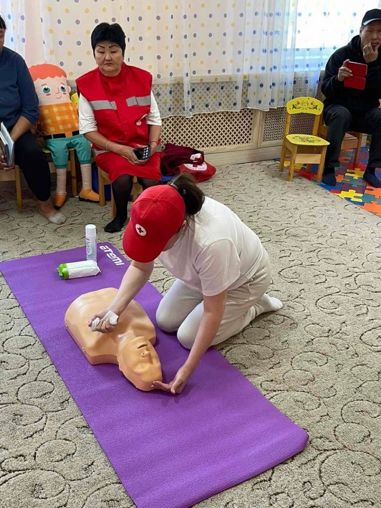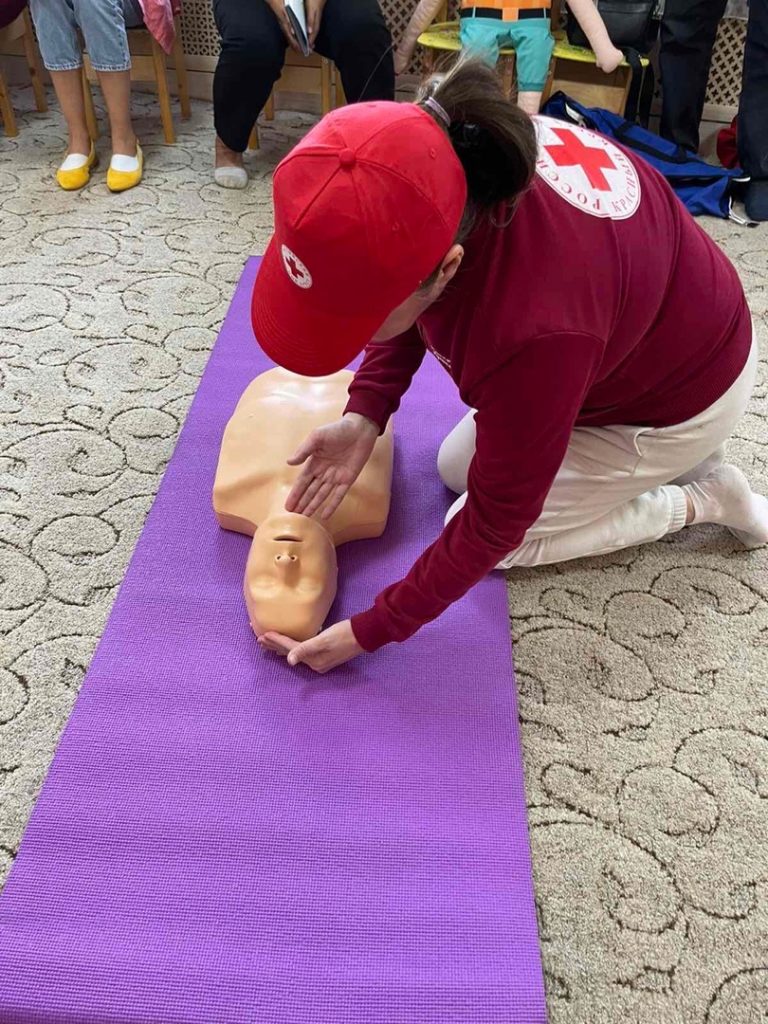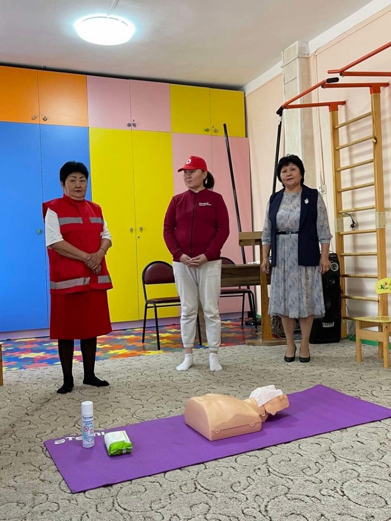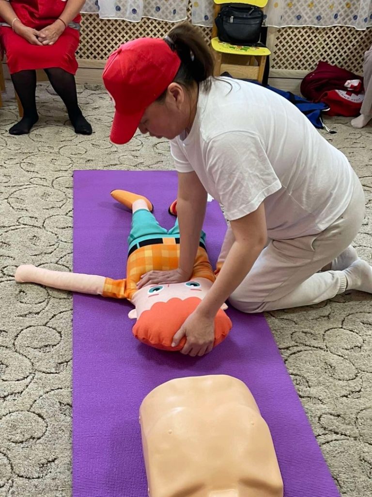 8 сентября в нашем детском саду работники Республиканского Красного креста провели для сотрудников обучение по оказанию первой доврачебной помощи пострадавшим. Инструктор Ирина Ондар показала как действовать при обмороках, при кровотечениях, как сделать прямой и непрямой массаж сердца (сердечно-легочная реанимация), наложение шин и транспортировку пострадавшего.