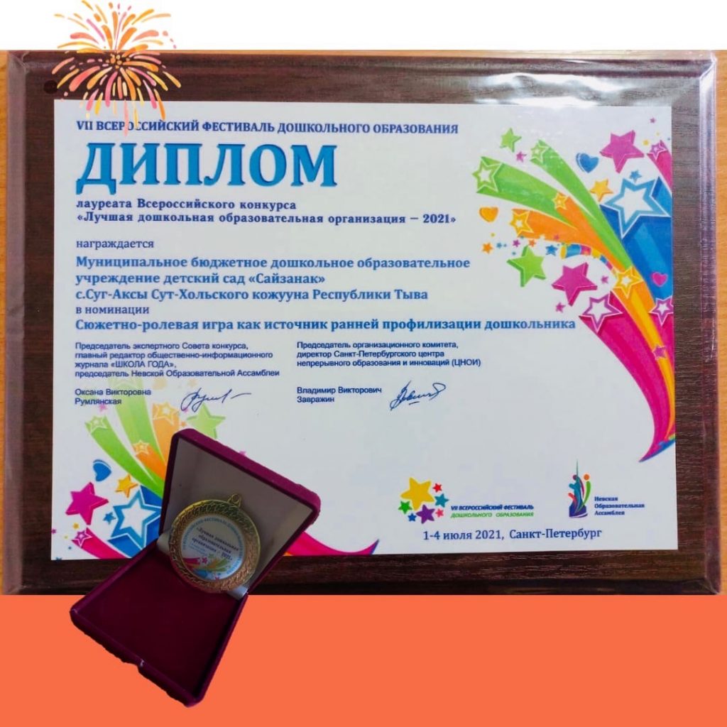 В г. Санкт-Петербург в рамках мероприятий VII Всероссийского фестиваля дошкольного образования прошла финальная часть Всероссийского конкурса «Лучшая дошкольная образовательная организация — 2021», где одним из победителей стал «Сайзанак».